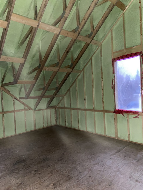 Closed-cell spray foam is a rigid material that adheres to the surfaces it is sprayed on, effectively "gluing" walls and ceilings together. Studies have shown that walls insulated with closed-cell spray foam can have significantly greater racking strength than those without it. This added structural support can provide some resistance against high winds and other stresses.
